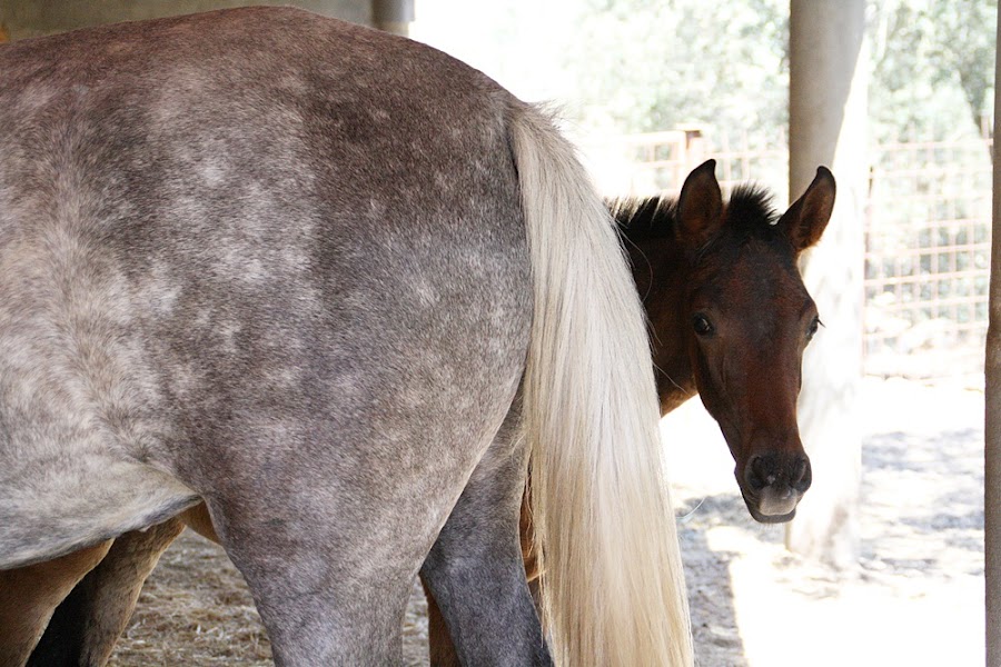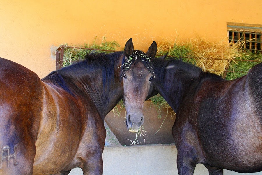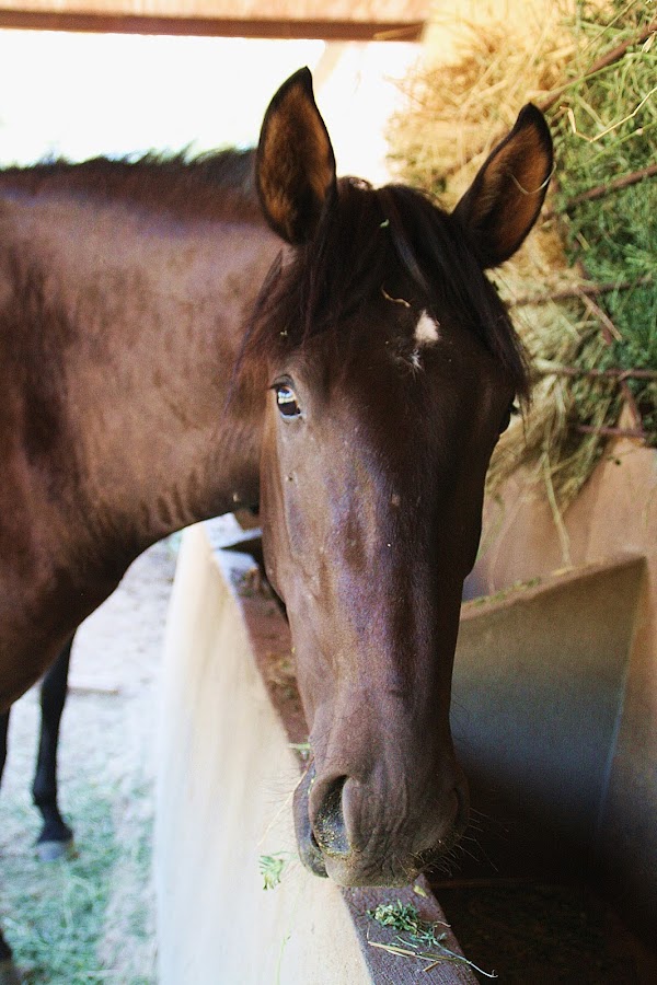 Si me seguíais hace un año, ya sabéis que Miguel tiene una finca con caballos y que vamos algunas veces a visitarles. El domingo pasado fuimos porque quería conocer a la nueva potrita de 2 meses y les llevé una caja de azucarillos. A los caballos les encaaantan los azucarillos. Excepto si hay alfalfa.