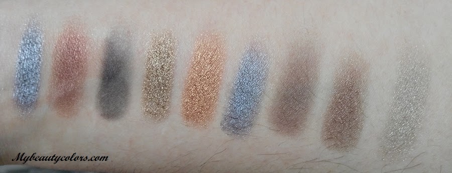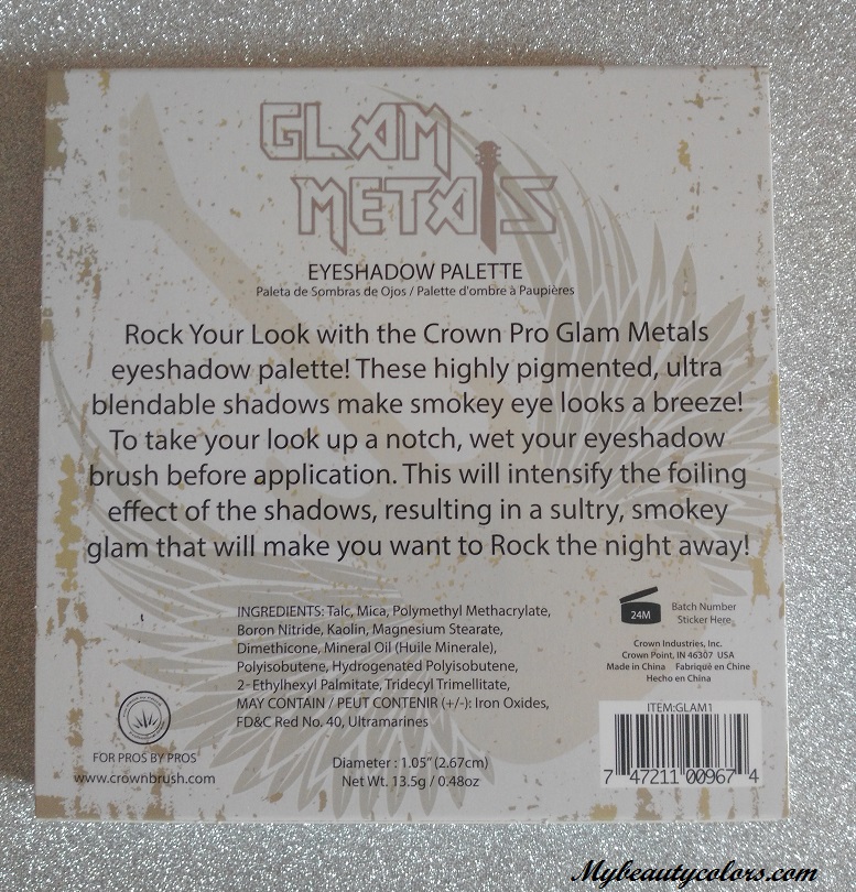 1-PALETA DE SOMBRAS "GLAM METALS" DE CROWN: Paleta con 8 sombras metálicas y una mate, valorada en 25 dólares. Esta paleta está inspirada en los colores del estilo Heavy Metal y su packaging también refleja muy bien el tema. Es una paleta muy manejable ya que no es muy grande, y muy práctica de usar. El packaging me parece muy original y las sombras son preciosas. Las sombras metalizadas son muy cremosas, como si fueran mantequilla, y la sombra mate es un poco más seca, pero todas pigmentan de maravilla y no son polvorientas. El fallo que le encuentro es la falta de alguna sombra de transición en tono mate, por lo que debes buscarla en otra paleta. Por lo demás, me parece de muy buena calidad. Os dejo unas cuantas fotos y swatches para que la podáis ver mejor.