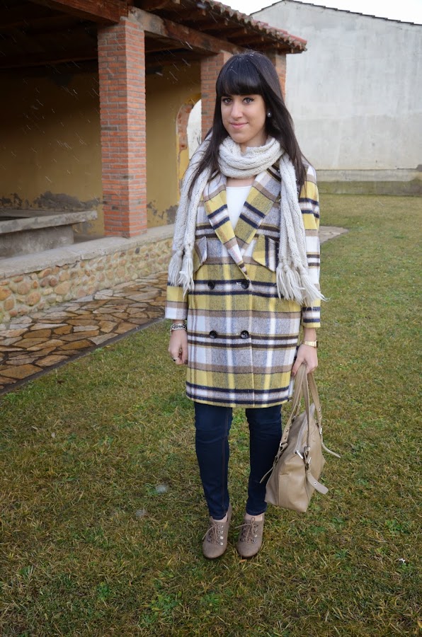 Llevaba mucho tiempo con la idea de un abrigo amarillo rondándome la cabeza y aun que no es exactamente como lo había imaginado, cuando lo vi me pareció precioso. Este tipo de abrigos estilo boyfriend me encantan para llevarlos con vaqueros y darle un estilo mas casual a los looks.