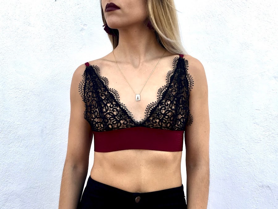 El que os enseño hoy es una preciosidad, uno de los mas bonitos diría yo... De encaje negro y con banda burdeos y cremallera dorada en la espalda. Es de HOUSE OF CB y es una maravilla!