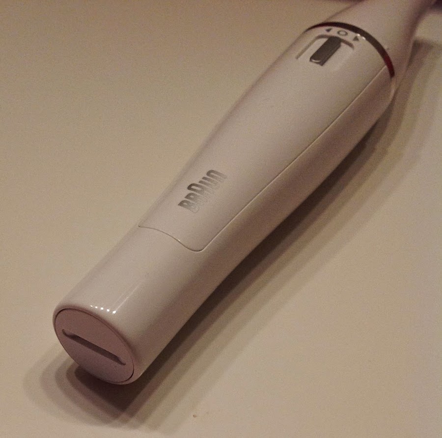 Ahora empezamos a hablar de la función de depilar, decir que el cabezal nombrado, consta de 10 pinzas ultra precisas que retira el vello a partir de 0,02 milímetros. Yo lo utilizo, por ejemplo para depilar el vello del labio superior, de algún lunar, y el entrecejo, pudiéndose utilizar también en barbilla y línea superior de las cejas. He de decir, que duele, como toda depilación eléctrica, ya que arranca el vello de raíz, por lo cual tiene un pro y un contra. El pro es que dura más la depilación y el contra del dolor, pero no es para nada inaguantable.
