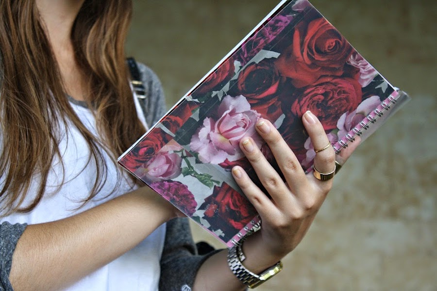 Como en todo, los detalles le aportan el último toque al conjunto. Ella optó por un conjunto de sencillos anillos dorados, normales y midrings, de diversos tamaños y grosores. Como podéis ver en las imágenes de abajo, también ha sabido personalizar su agenda para hacerla mucho más chic.