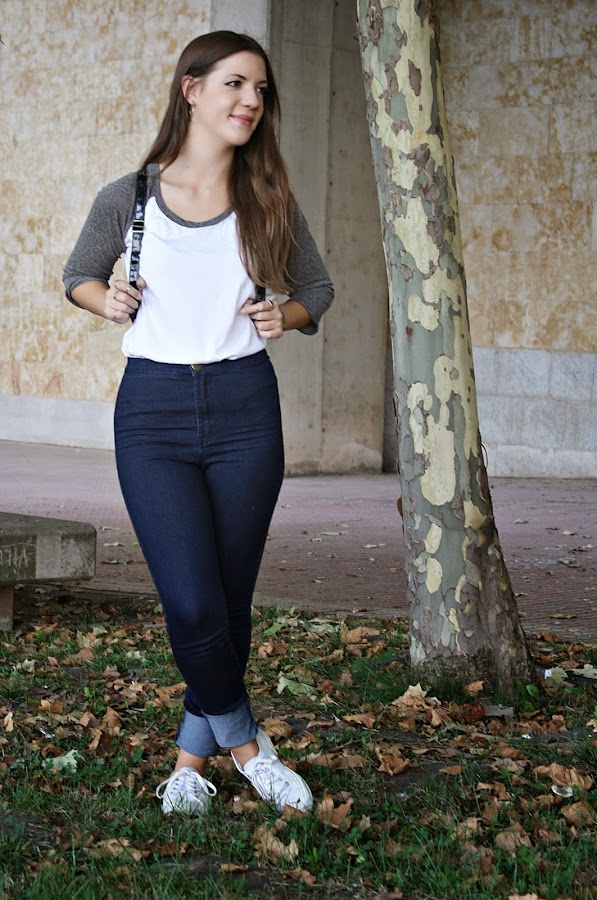 Su outfit es cómodo, perfecto para largos días de biblioteca, trabajos y facultad. La mochila es idónea para poder llevar pesados apuntes, carpetas y demás.