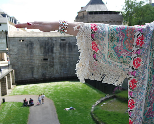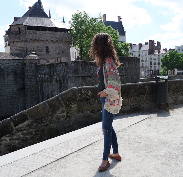Today I show you the last pictures we took in Nantes, it was a beautiful sunny day so we could enjoy the city all day long. I chose a comfortable and colorful look with my new flower kimono as key piece, I match it with my favorite pair of destroyed jeans.I hope you like the pictures. Thank you for your visits and comments, have a great week.