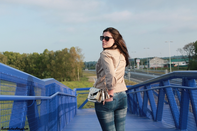 Las combiné con un look sencillos, jeans, blusa blanca de encaje, chaqueta en nude y bolso dorado a juego con los zapatos.