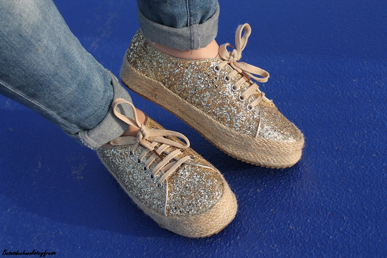 En cuanto al look de hoy os muestro mi prenda favorita para este verano, nada más y nada menos que mis nuevas espardeñas de brillos dorados que compre hace unas semanas (y que ya os mostré a través de mis redes) en Okeysi.