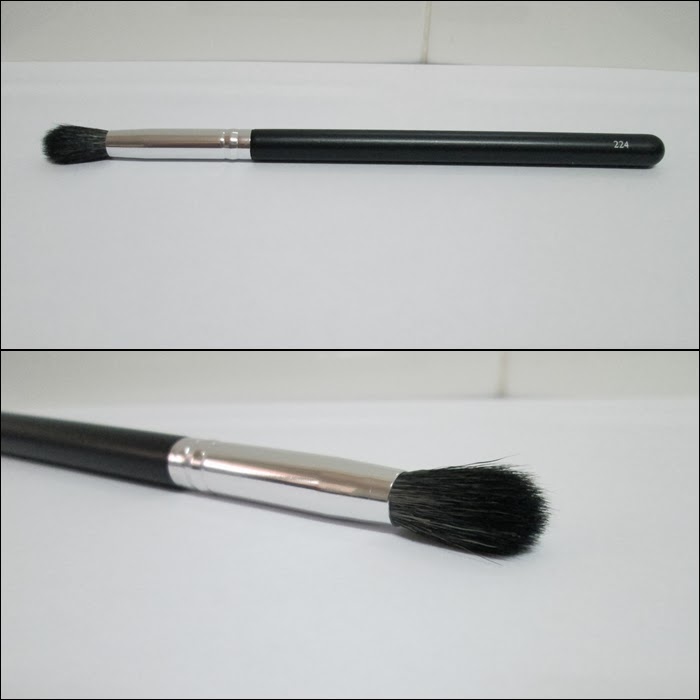 La verdad es que estoy encantada con ella, es muy suave, no ha perdido ningún pelito y difumina genial las sombras. Y creo que imita al pincel "224 de MAC", ya que tiene grabada la numeración.
