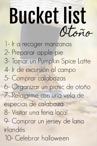 Los eventos son parte importante de mis planes. Tengo previsto organizar un picnic de otoño, con productos típicos, chocolate caliente y mantas de cuadros. Lo haré, espero, no tardando mucho para que no haga demasiado frío. Por otro lado, tendré que pensar qué hago en Halloween. El año pasado hicimos una pequeña fiesta en mi casa con peli de miedo y este año quería ser un poco más ambiciosa pero no sé si será posible...
