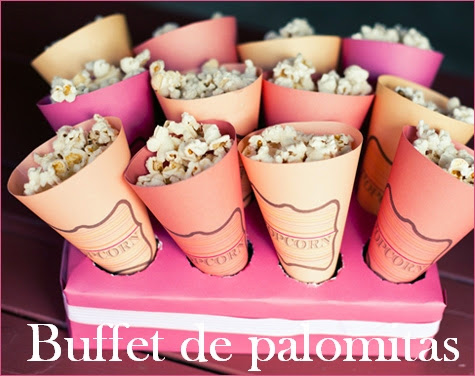Con el típico palomitero todos estáran deseando comerse unas palomitas como si de una boda de cine se tratase al comienzo del convite mientras se espera por los novios antes de comer o incluso durante el baile. Mil y una manera de presentarlas, en el tipico cubilete de cartón, conos de papel...