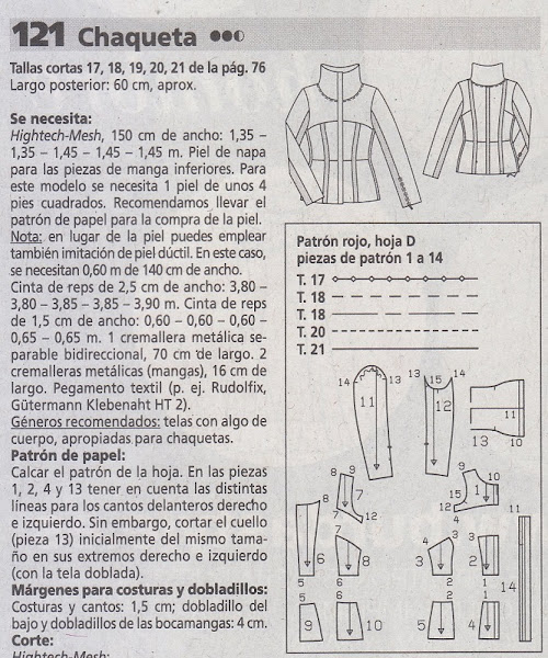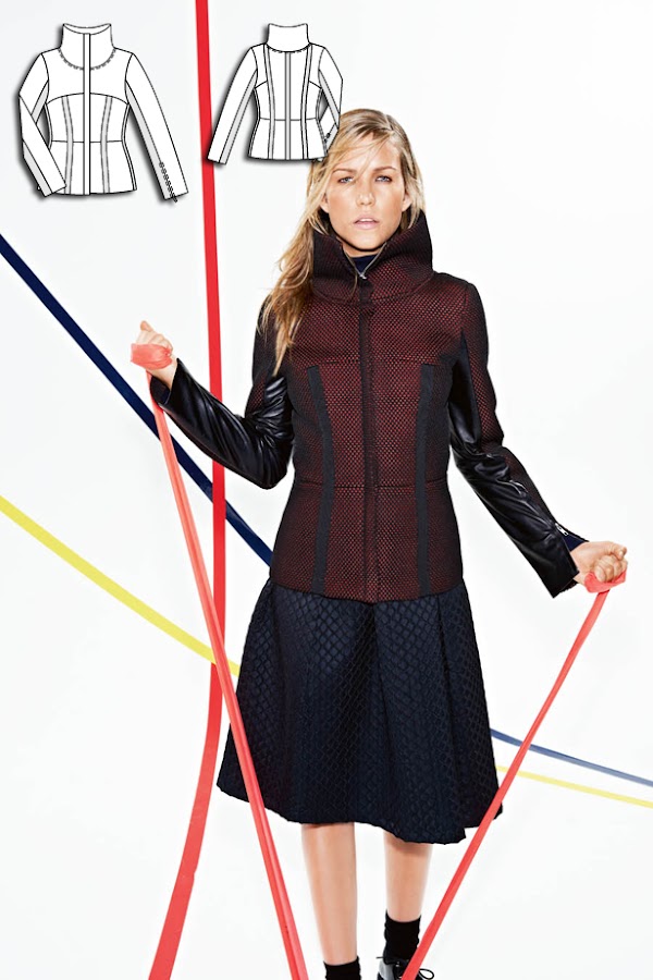 De este "bloque de moda técnologica " , como ellos la llaman , me gusta muchísimo el corte de esta chaqueta , sobre todo ese canesú delantero curvado ,que tiene que sentar genial , además viene en tallas cortas , con lo que la mayoría de nosotras , que somos más bien de tamaño menudo , no tenemos que andar haciendo virguerias con los patrones para que nos encajen