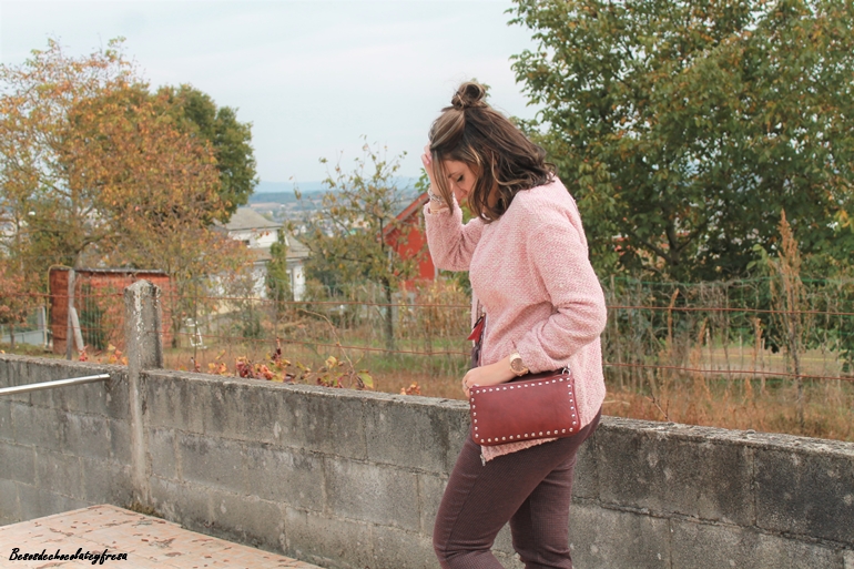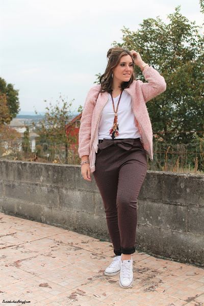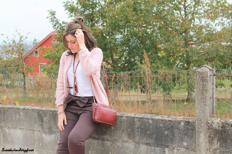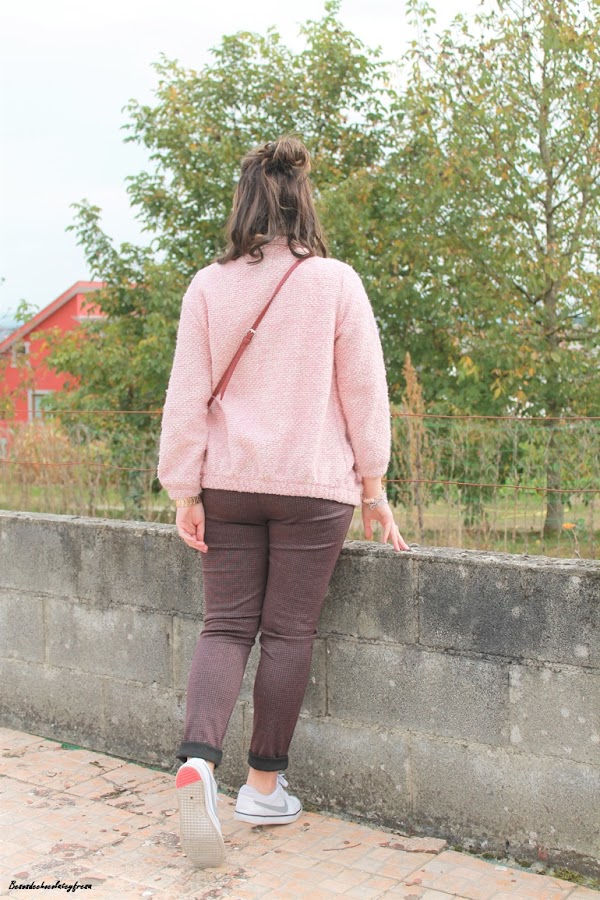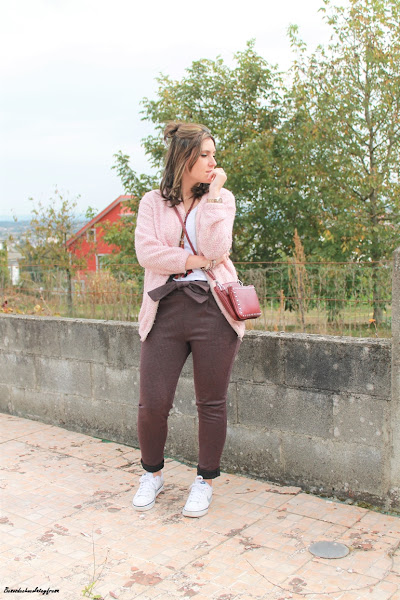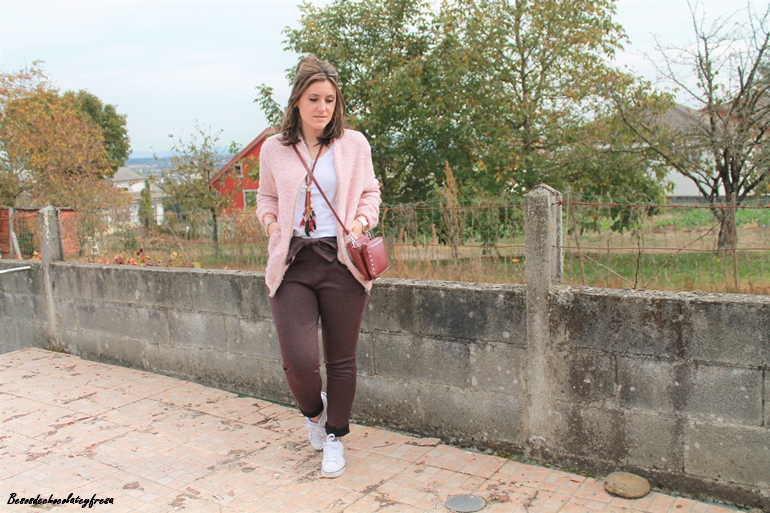 Hoy os muestro un look con dos colores en contraste que a la hora de combinarlo me pareció que casaron a la perfección, se trata del burdeos y del rosa. Cada vez me gustan el rollo de los pantalones tipo pinza, rollo sport que tanto podemos llevar con sneakers como con unos stilettos para una ocasión más arreglada.