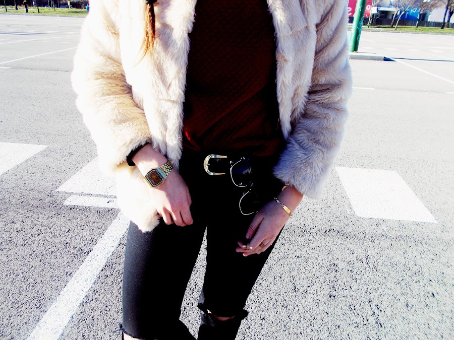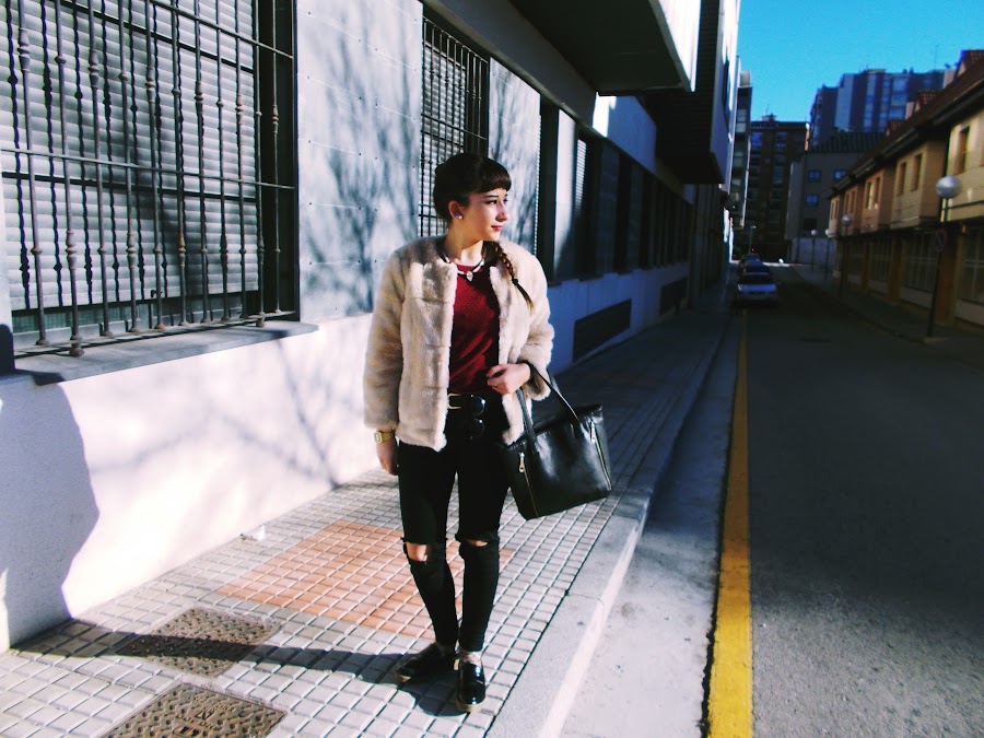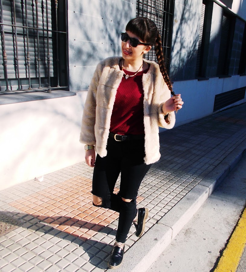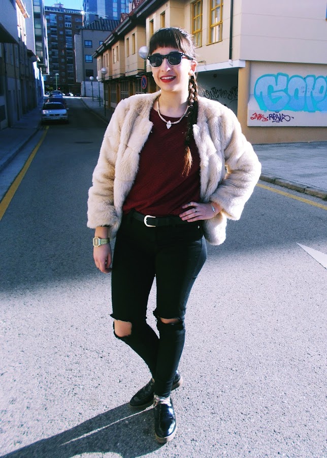 Jeans: Stradivarius + DIY // Coat: SuiteBlanco // Sweater: Stradivarius // Sunglasses: Lefties // Shoes: Zara // Socks: Suite Blanco // Pendant: Sfera