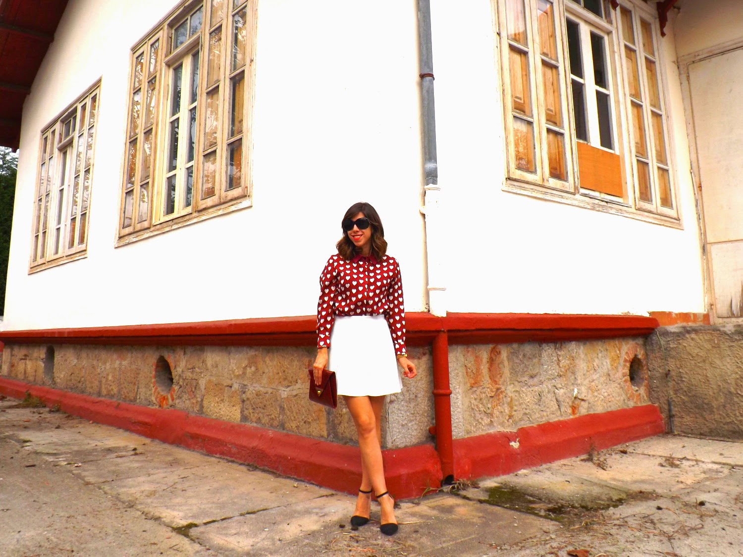 This season, burgundy is fashionable in all kinds of garments and accessories. It is a tone that I love, and in shoes and handbags looks amazing. In today"s post I will show it twice, in the fantastic shirt and in the purse. Although I have now combined it with a white skirt to give light, I usually add mustard garments and even pink, getting very visual and striking combinations.