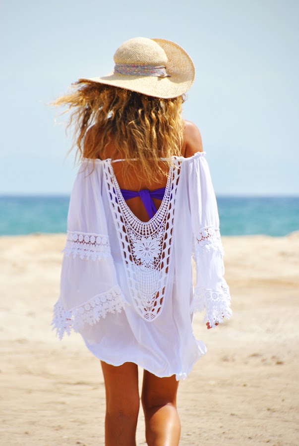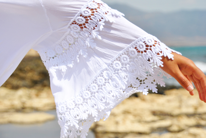 ¿Que tal chic@s? El outfit de hoy tiene como única protagonista esta preciosa blusa ibicenca. Es de algodón 100x100, con detalles en crochet en las mangas, espalda y pecho y, además reúne dos de las tendencias que más me gustan esta temporada: los hombros al aire y las mangas acampanadas. La compré a un precio genial en una de las tiendecitas del puerto de Ibiza, pero la he visto en varias tiendas online, así que si os gusta la podéis conseguir fácilmente por ejemplo en Stylove Clothing.