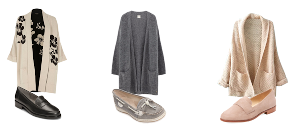 El cárdigan, esa chaqueta sin botones, amplia y larga, es el compañero perfecto de los típicos (y no tan típicos, que los hay de diseños muy revolucionarios) mocasines.