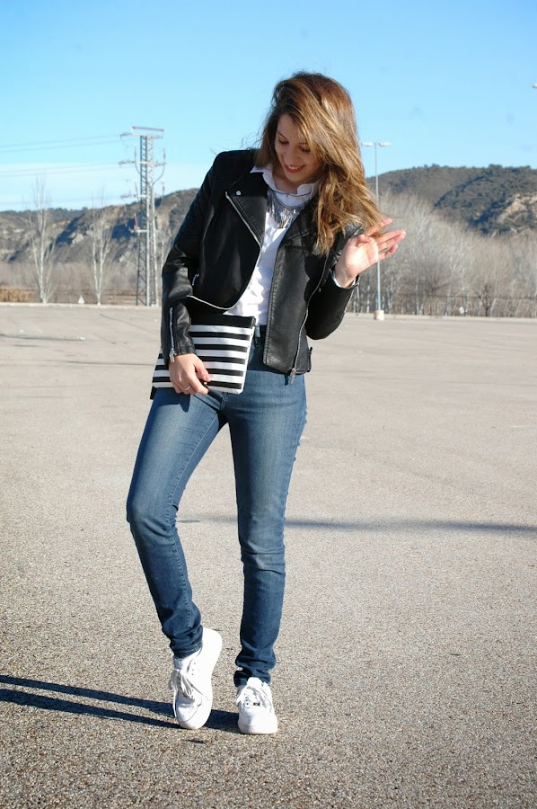 Muy buenos días! Aquí os enseño mi primera compra de rebajas, un jersey a rayas de Zara con un largo perfecto para leggins. Como véis me voy animando con las zapatillas en los looks, éstas son de Nike, para sacarlas gran partido, creo yo... El resto ya lo conocéis, el abrigo no puede ser mejor compra porque se adapta a cualquier estilo de outfit, no creéis? A pesar de mi sonrisita hacia un frío q ...