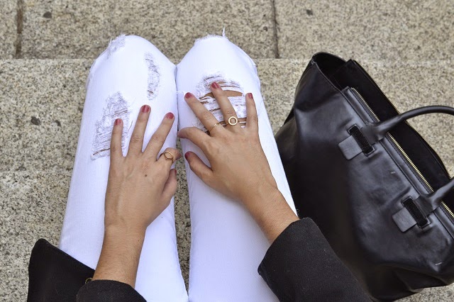 Camisa/ shirt: Dorado Vintage Jeans: Zara Sombrero/ hat: Zara Bolso: Balenciaga - Dorado Vintage Joyas/ jewels: María Pascual Zapatos/ shoes: Blanco Mezclando básicos de mi armario tengo los looks preferidos...camisa tipo masculina blanca vintage, con jeans rotos, sombrero negro y stilettos con motivos étnicos, algunas joyitas minimalistas, toque en los labios y bolso negro con detalles dorados. U ...