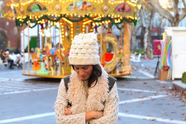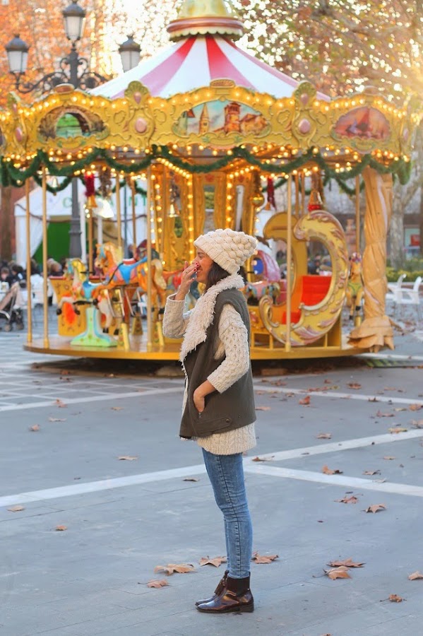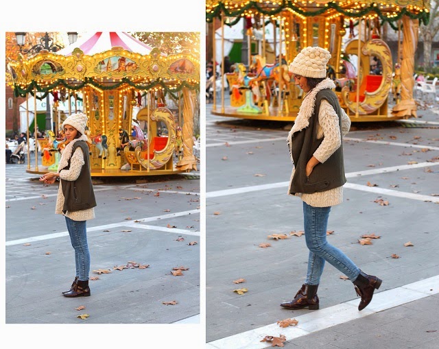 Desde luego el frío polar no hace que me quede en casa, pero si que parezca un oso, maxi jersey, gorro de lana y chaleco de pelo para el último domingo del año.