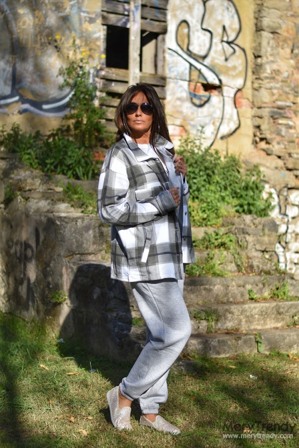 Desconozco si también os habréis acostumbrado a las combinaciones inesperadas en vuestros looks de diario... Me estoy refiriendo a prendas cómodas de casa, como las que os estoy mostrando, mezcladas con esas de aire más formal para dar como resultado los outfits más versátiles que se puedan imaginar. Del escritorio al supermercado sin cambiarse... Jijiji ¡Hecho!