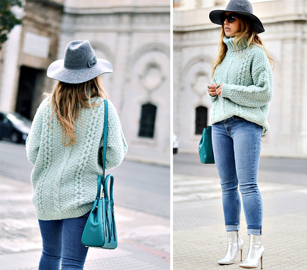 Cable knitwear: Romwe / Jeans: Levis / Bag: Zaful / Booties: Zara / Hat: Unit