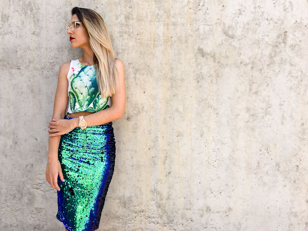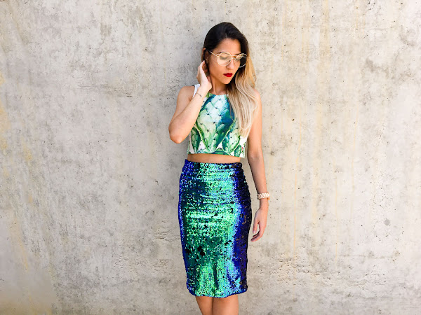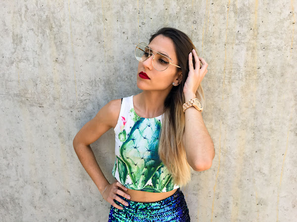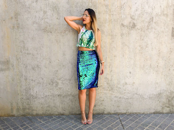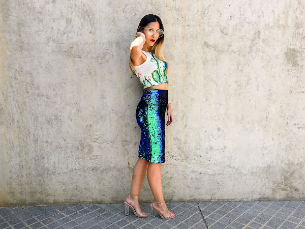 But here I come as every Friday with a new post and a new look! Again we repeat trend and I use sequins and much shine in my outfit with this midi skirt. It is actually green, but depending on the light, you may see blue or lilac shades. I have combined it with a crop top cactus print, because the cactus in summer always molan !!