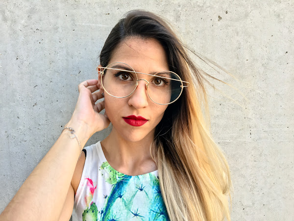 Y los complementos no se quedan atrás, porque he elegido unas súper gafas redondas (tendencia total) y mis sandalias transparentes, que ya os enseñé en los últimos post!