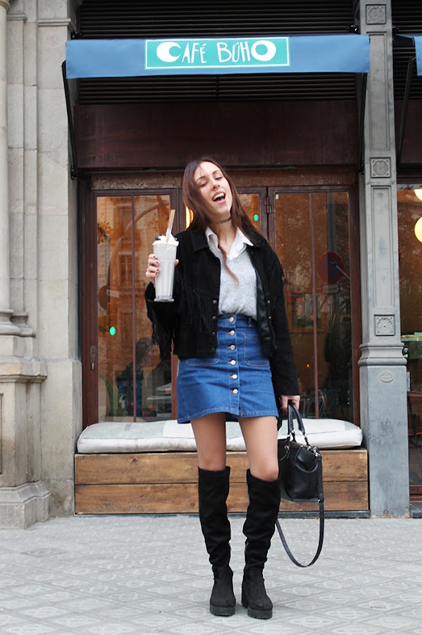Sweater: H&M / Shirt: Mango / Jacket: Vintage / Skirt: Pull&Bear