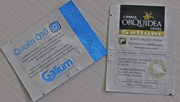 Además, estas dos muestras de crema de Galium: 1 con vitaminas A, E y C "Quolin Q10" y la otra "Orquídea Negra" con Calcio y Magnesio.