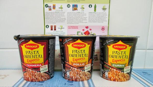 Y, por último, "Maggi", nos presenta la pasta oriental express, con todo el sabor de oriente en un práctico formato vaso. Con su perfecta combinación de fideos, especias y vegetales, cada receta tiene un sabor único y auténticamente oriental. El precio de cada uno es de 1,10???.