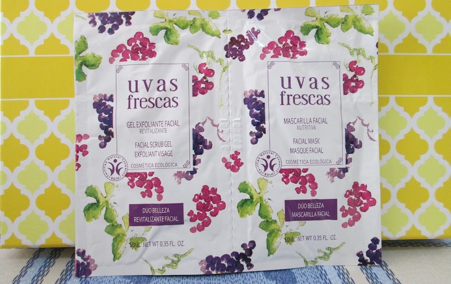 Lo primero que os enseño, se trata de este dúo de muestras de la marca "Uvas Frescas". Yo ya probé, hace tiempo algunos productos de ella y la verdad, es que me gustaron mucho, especialmente, el exfoliante facial, que me a hecho mucha ilusión volverlo a ver y probar.