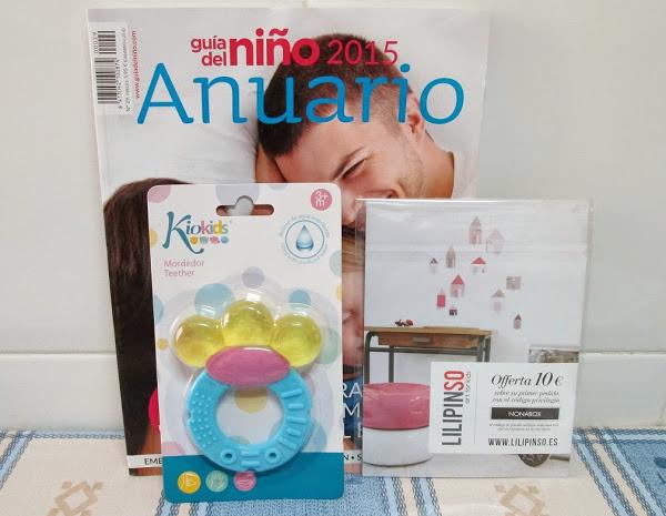 Este mes, la cajita nos trae, como otras veces, la revista "Anuario - Guía del niño 2015". Es el mejor compañero de viaje hasta la maternidad, ya que vienen publicaciones muy especiales con temas de máximo interés para los nuevos padres, ampliando sus contenidos y las páginas delicadas a los productos que tu hijo necesitará en sus primeros meses y años de vida.