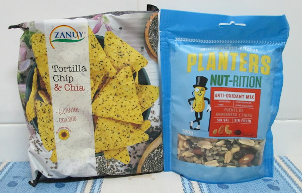 Nachos con Semillas de Chia "Zanuy": Me ha parecido, una manera, muy original de comer nachos. Normalmente, solemos tomarlos con queso fundido, aunque, la verdad, solos, también, los hemos probado y ¡están muy buenos!. Su precio es de 1.