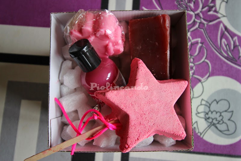 Para empezar, la varita mágica con olor a Snow Fairy total y la cual podemos usar varias veces para nuestro baño, en el que deja un olor buenísimo y un color rosado a todo el agua de la bañera. Me gusta un montón, la he usado para tres baños y aún me quedará para un par de ellos mas, así que está fenomenal.