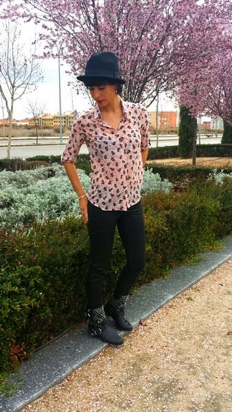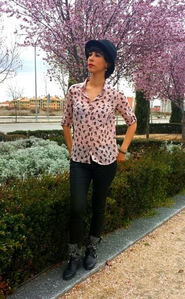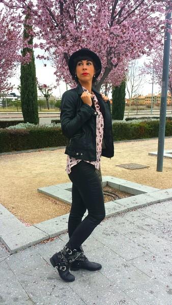 Combinamos con la chaqueta de cuero también de Zara de cremalleras y tachuelas y el sombrero de H&M y…conjunto terminado.