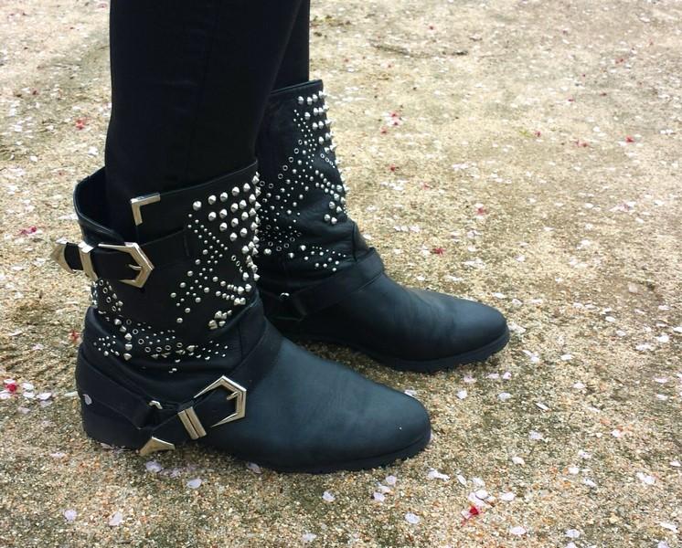 Botas con tachuelas de Zara, si vamos rockeras sacamos todo el set!! El año pasado se llevaba mucho este tipo de botas y por que no usarlo más, comodísimas y geniales para este tiempo que te apetece ir más abrigada pero sin dejar de ir cool.