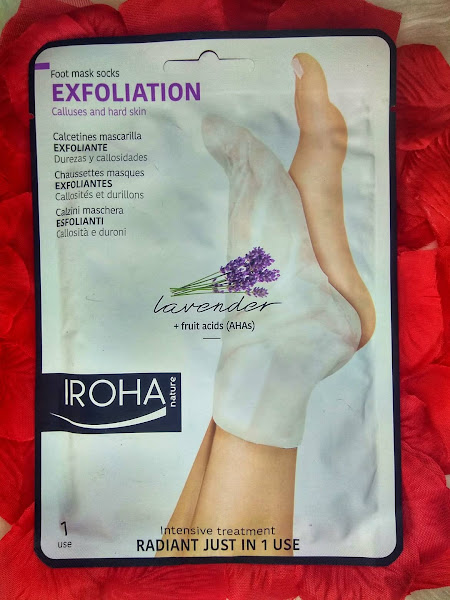 Aviso esta mascarilla sirve de terapia de relax, ya que debemos tener los calcetines puestos entre 90-120 minutos, os recomiendo no moveros mucho ya que vienen bien cargados de producto y resbala al llevarlos puestos, por cierto la primera sensación al ponerlos es "... que frío" pero en seguida te acostumbras. Tengo psoriasis así que aunque era de los productos que más ganas tenía para probar también el que me daba más miedo por como tenía la planta de los pies, pero no he tenido ningún tipo de reacción adversa aunque como ya sabéis cada cuerpo y piel es diferente, nunca se sabe como vamos a reaccionar. Tras el uso y el posterior remojo de los pies en agua para eliminar el producto y las pieles que ya se han empezado a soltar, de hecho se puede observar en el agua. Con el paso de las días nuestros pies irán mudando su piel y además quedan super suaves e hidratados por los beneficios de la lavanda.
