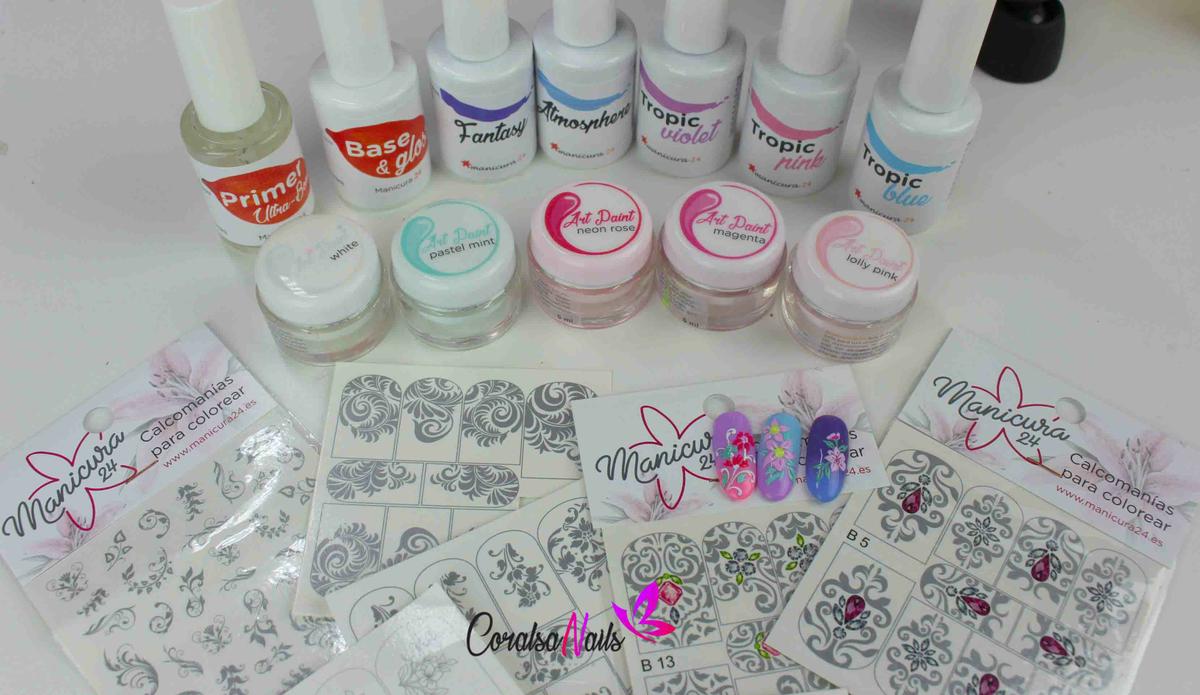 Las nuevas Calcomanías para colorear de Manicura24 son una muy buena opción para ofrecer decoraciónes de calidad en nuestro salón. En el vídeo que os dejo al final de este post os explico cómo aplicarlas sobre esmalte permanente y como colorearlas con los art paint de manicura24 también que por cierto me encantan.