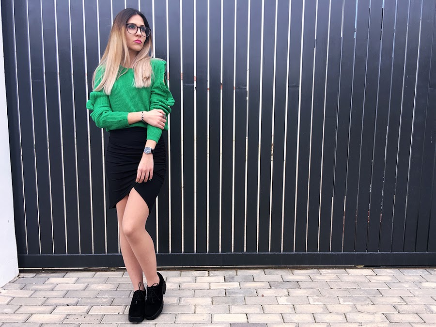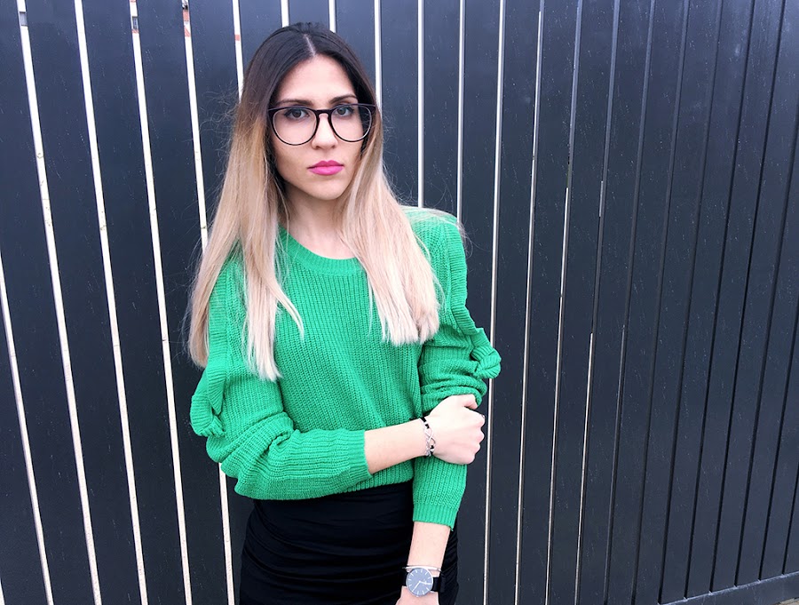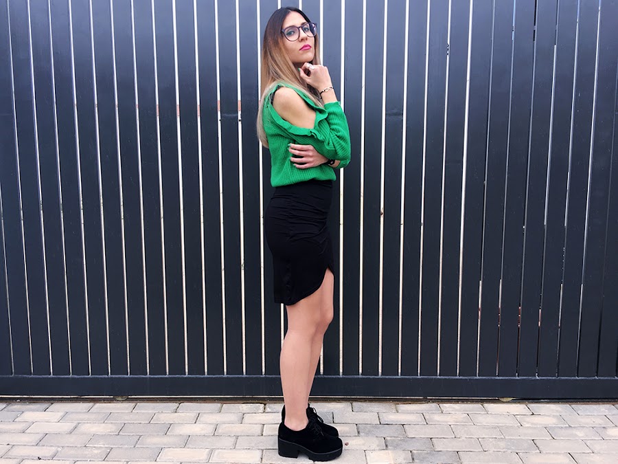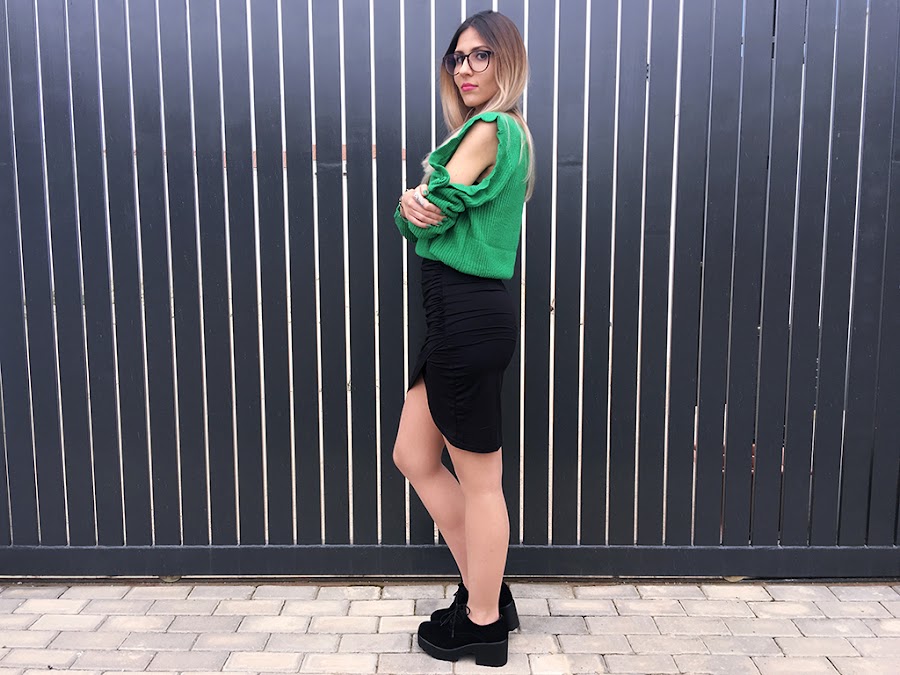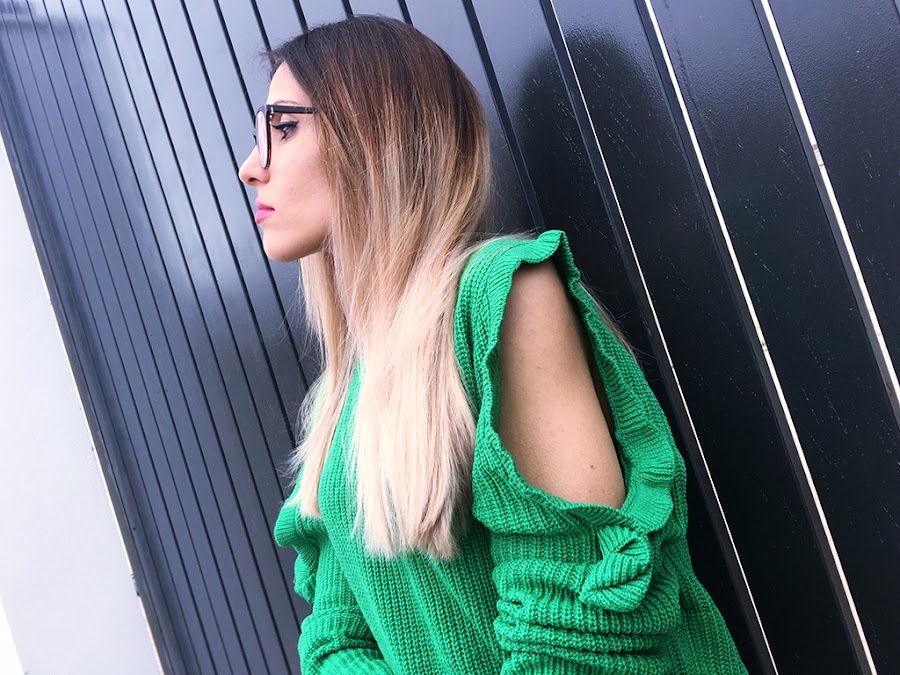 Pero para acabar bien el jueves, os traigo nuevo post con un total look de SHEIN! Como os dije en post anteriores, los jerseys de hombros descubiertos están siendo un éxito desde ya!! Pero es que mi jersey de hoy no es que solo deje los hombros al descubierto, sino que tiene un detalle de volantes que lo hace muy especial! Además, su color verde me ha enamorado!