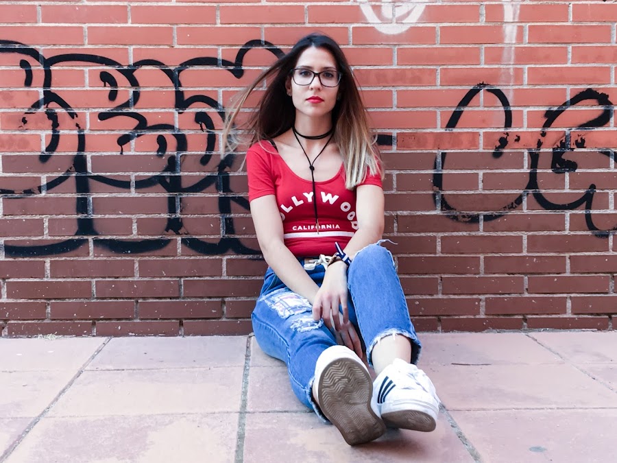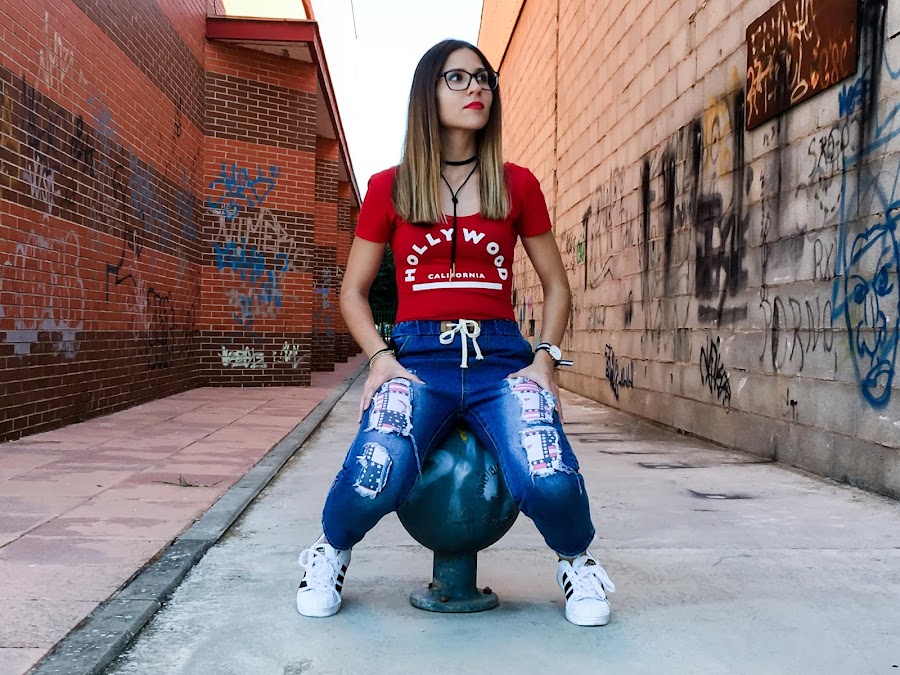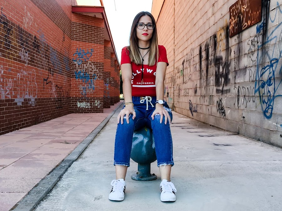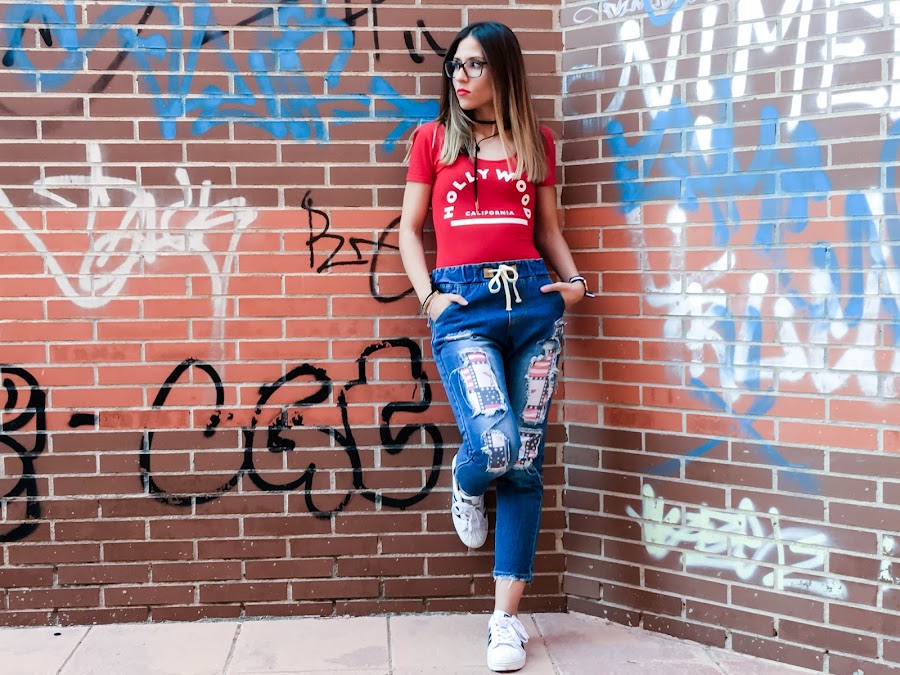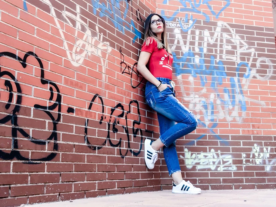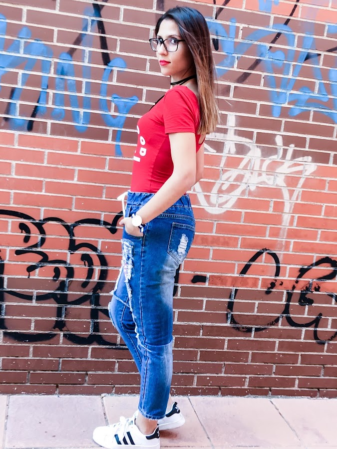 Lo he combinado con un body rojo de manga corta y mis adidas superstar!