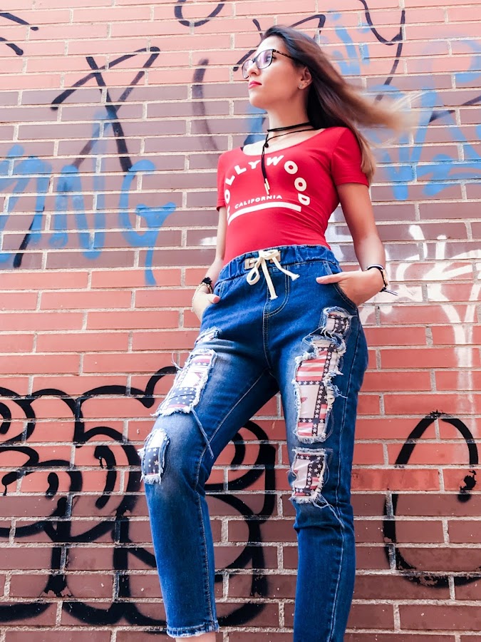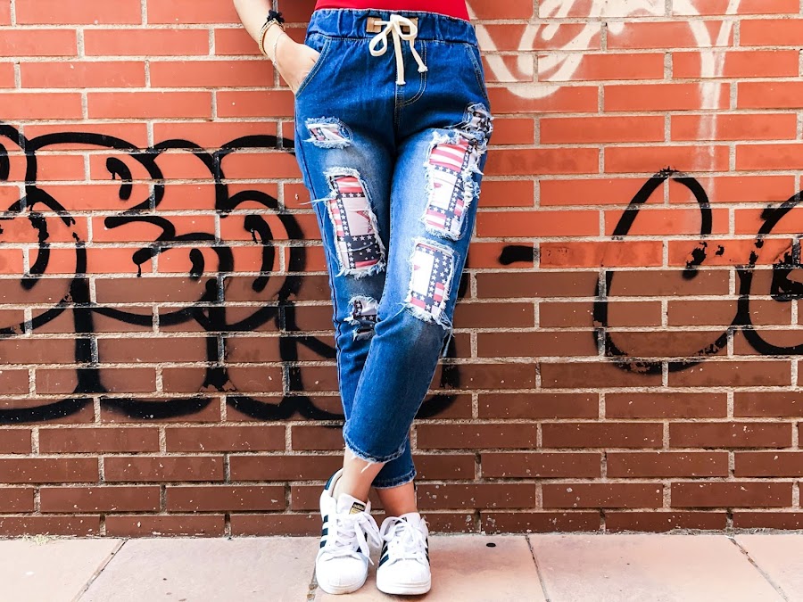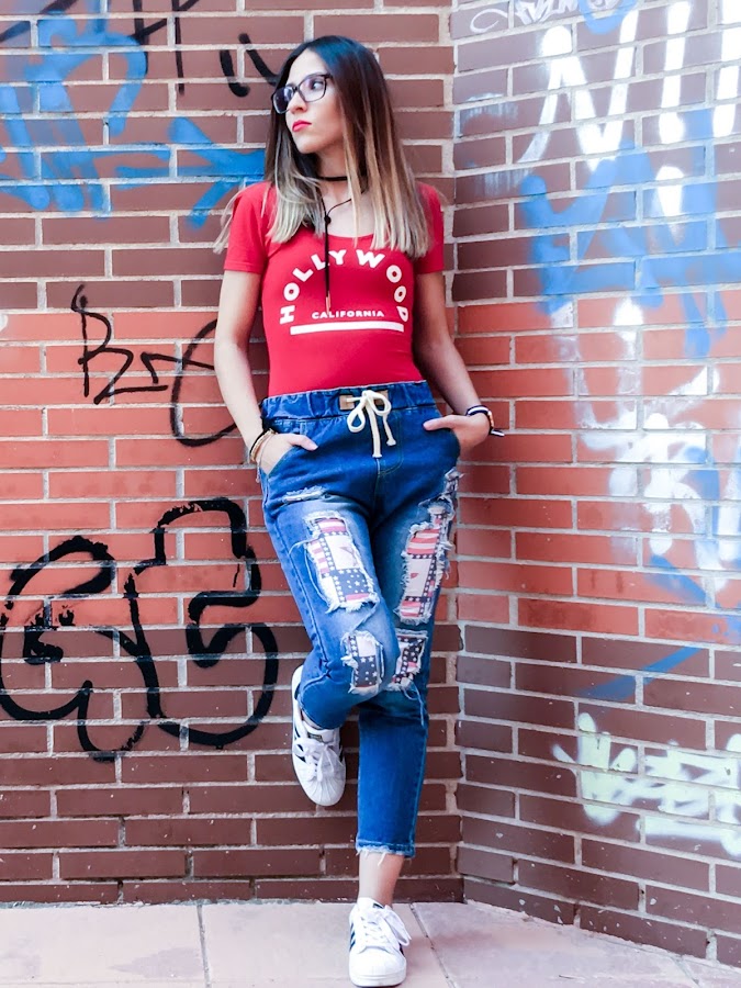 So what better to put some jeans and more if I teach you like, as destroyer. Just I love it! You know what I like denim and Im a big fan of the patches, and if we put the two, is the cane !! Well, theyre not patch itself, it is a fabric sewn broken under the jean, imitating a little the US flag (or at least I remembered me).