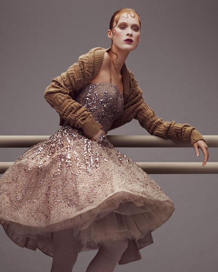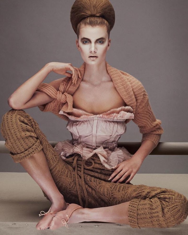 Anne Sofie lleva jersey de lana Couverture. Nina Ricci bustier seda y organza , Vivienne Westwood polainas de lana de mezcla Repetto zapatillas ballet