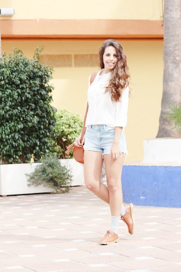 Hola cositas bonitas! Por aquí estoy un jueves más ☺ A pesar de estar en primavera el tiempo es bastante raro... Un día hace sol, otro nublado... no sabe una que ponerse ya. En esta ocasión os enseño un outfit básico pero a la vez chic. Usé unos jeans rotos con una camisa blanca de mi chico, bastante grande, sí, pero me encanta ponerme sus camisas, a vosotras también os pasa? La combiné con una ch ...