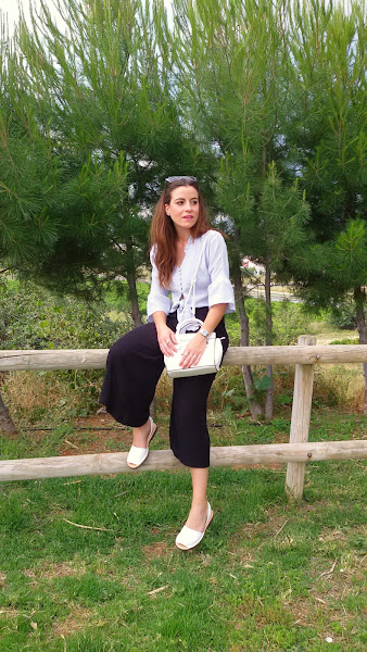La camisa / top crop, me encantó nada más verla. He probado varias combinaciones ; jeans mom fit, faldas de tiro alto , pantalones culotte como en este caso , etc ... La cuestión, es perfecta como básico para este verano.