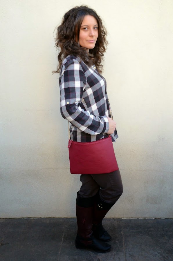 Hoy os muestro un outfit de carácter más desenfadado, y por la gama de colores me voy a permitir decir de rollo "mecánico". Los cuadros de la camisa son de distitas tonalidades de grises y las rayas ddivisoriasen color burdeos. Ya os la mostré en un look más sexy con shorts de cuero, pero esta vez es un look con jeans. ¿Os gustan las camisas tipo leñador?