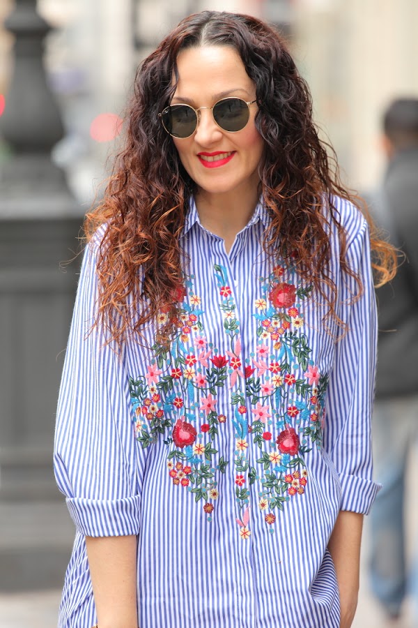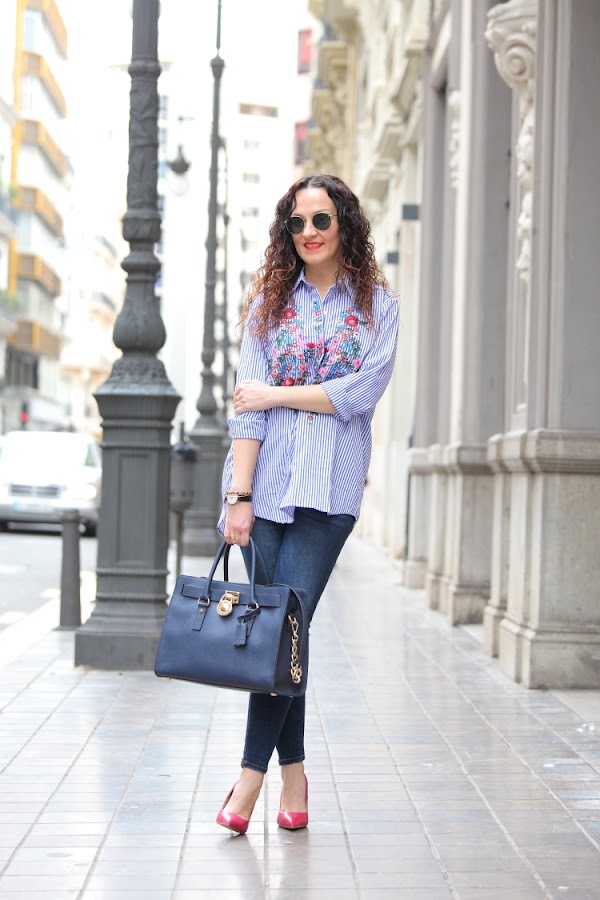 Hoy os enseño mi nueva camisa de rayas y flores bordadas. Desde que Zara la sacó esta temporada me apetecía comprarla, pero como no hago más que comprar prendas azules me resistía. En cambio cuando la vi en Zaful tirada de precio ya no pude resistirme, como veis es exactamente igual que la de Zara y la verdad que la calidad es muy buena Aprovechando que me iba a Valencia la metí en la maleta y este es el look del día que la estrené combinada con jeans pitillos y stilettos fucsias.