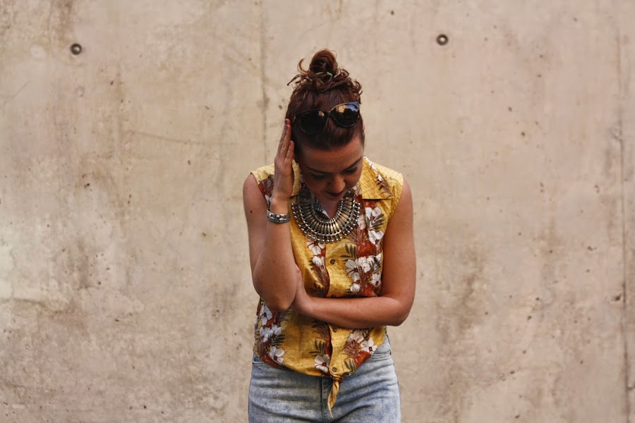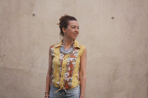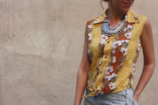 La camisa que llevo en el look de hoy es única y exclusiva: son camisas de segunda mano, importadas directamente de EEUU. Como son de hombre y generalmente son muy grandes, las entallan y las transforman para obtener un resultado insisto único, y así, además, nosotras también podemos tener nuestro tesorito en forma de camisa Hawaiana auténtica.