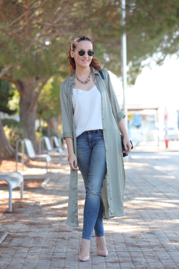 Camisa/Shirt: Zara. Top: Stradivarius. Jeans: Zara. Collar/Necklace: Zara. Pulsera/Bracelets: Alex&Ani vía Ramiro Joyeros. Bolso/Bag: Pull&Bear. Zapatos/Heels: Pull&Bear.