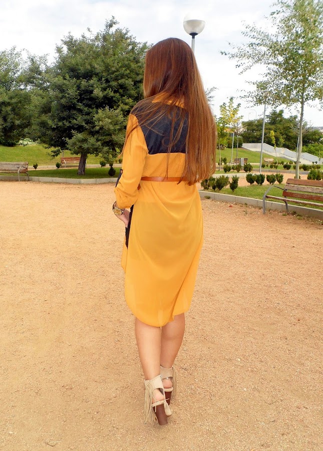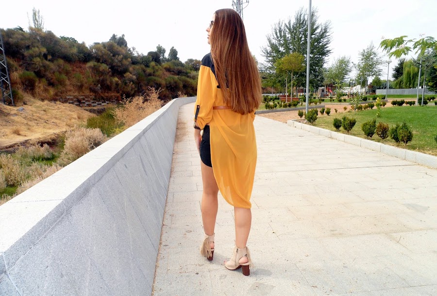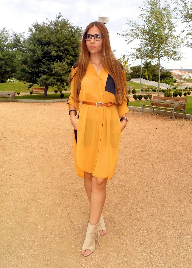 Chic@s que tal habéis comenzado la semana?? Por muy bien que comience ya estamos deseando que vuelva el finde y por supuesto, que vuelva el sol!! Por eso me encanta el color del look de hoy y es que el color mostaza alegra los días grises vayas donde vayas! La blusa que os enseño hoy me encanta, es súper original con las aperturas a los lados, y me encanta como destacan los tonos marrones que lleva en el bolsillo y la espalda.