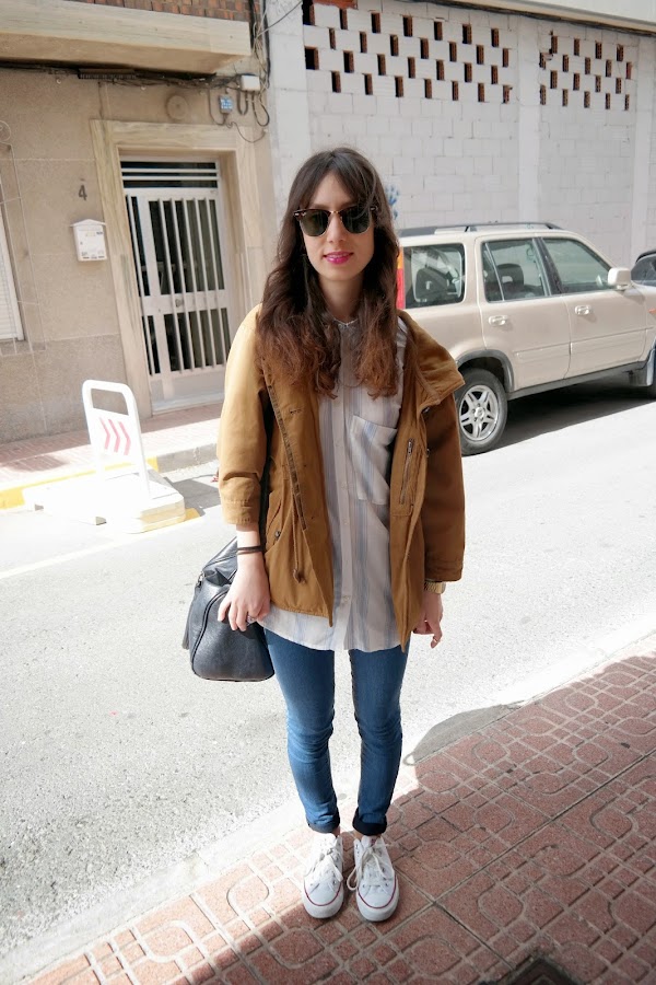 I am a fan of the wide, comfortable clothes but when I saw this shirt in my pull&bear had to buy or yes because besides that I love his masculine style, is very soft and comfortable. At first I just always happens, do not know how but decided to combine with jeans, converse and this parka also more or less masculine style. In the end I really liked how it turned the look to put me off that ring that I got my sisters is very fashionable. Lately I know I go a few looks but I bundled practices... and we always go with the uniform and very fashionable that is not this haha.