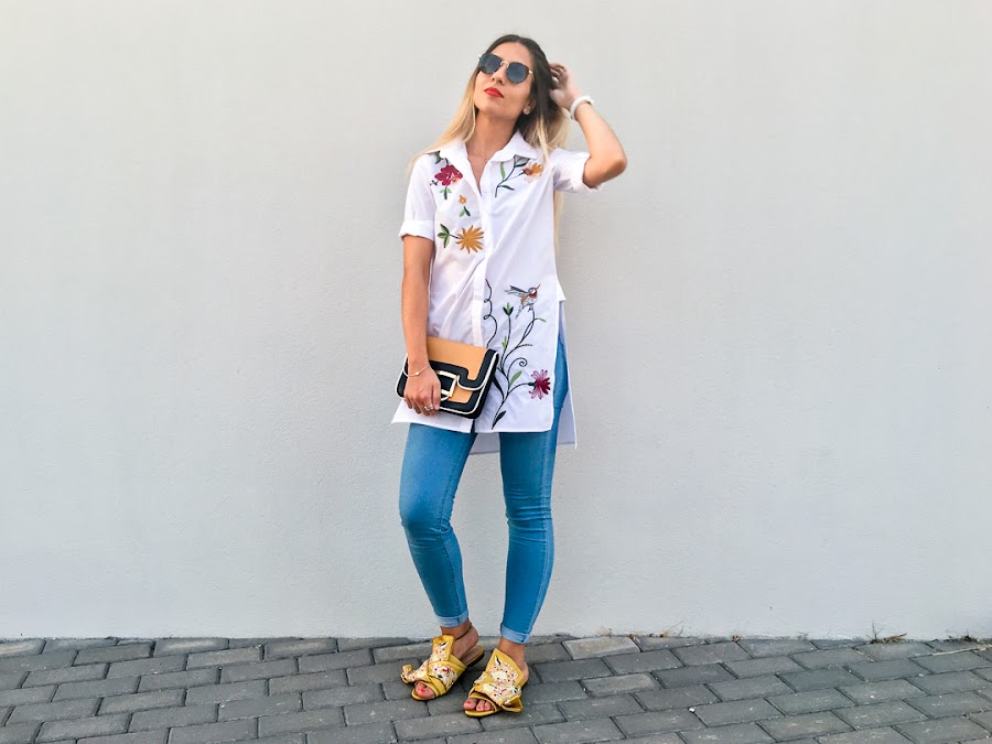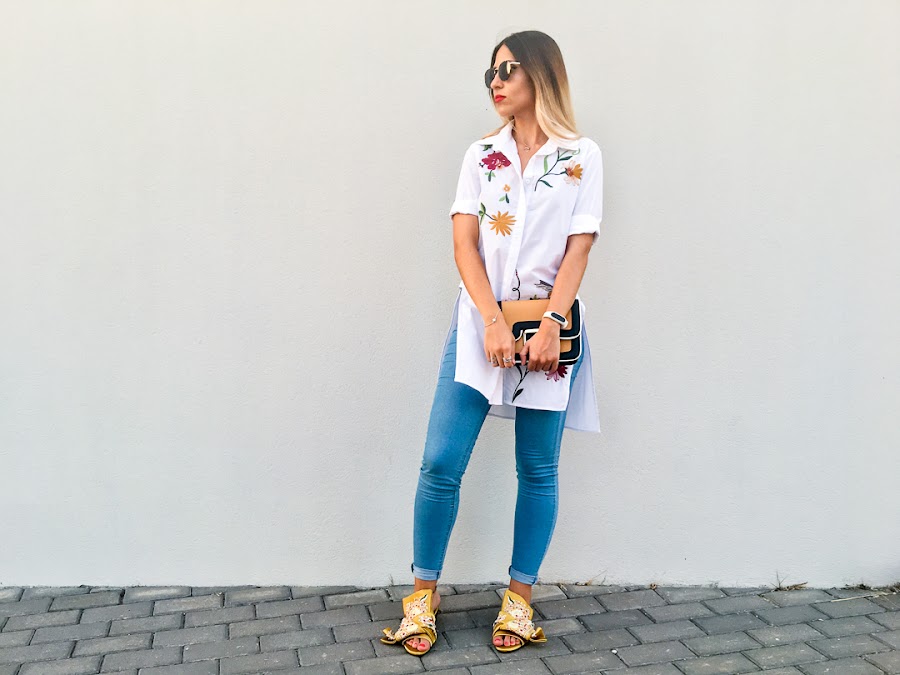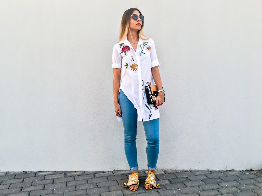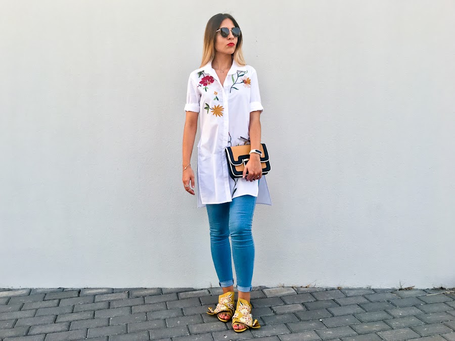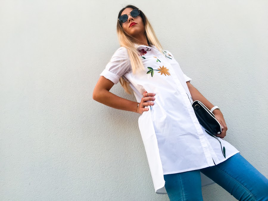But while, I bring you a new look with a maxi shirt embroidered with side openingt. It is a very original shirt, very comfortable and of course, with my favorite trend, floral embroidery on the chest and back.